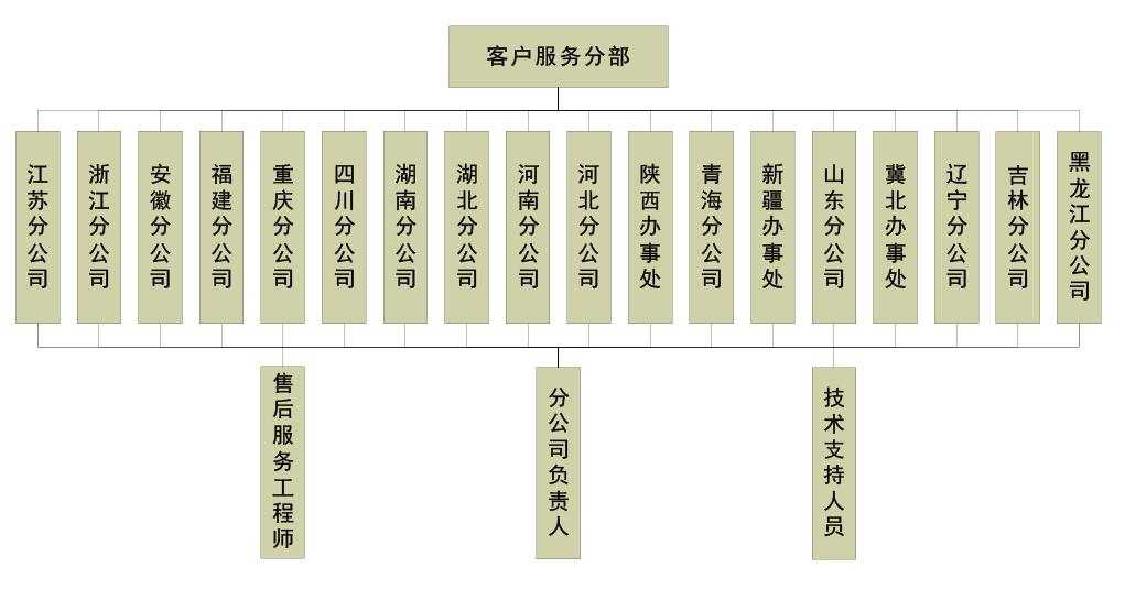 公司设立客服分部为售后服务的专职机构,归口市场部管理。客服分部配备专职的客服人员(驻外办事处人员),同时还配备来自研发中心和制造部的售后服务技术支持和质量支持人员。