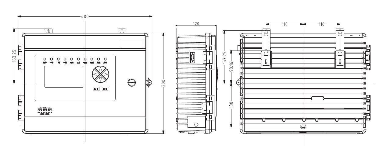 一 产品概述 采用230MHz电台作为通信信道,实现对专变用户的电能信息采集,以及用户用电负荷和电能量的监控,并对采集数据进行管理和传输。具备实时预付费管理、负荷监控、本地电表数据采集、脉冲数据采集等功能。用户通过终端的本地客户接口可以获得实时用电信息,引导用户合理用电。 二 主要功能 1)实时运算处理能力强。配有不掉电RAM和高性能DSP监控芯片; 三 技术参数 1)额定电压:AC220V±20%; 四 外形尺寸